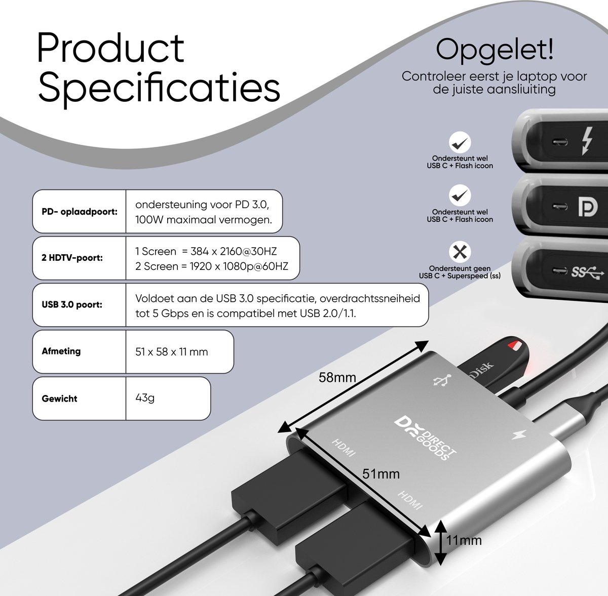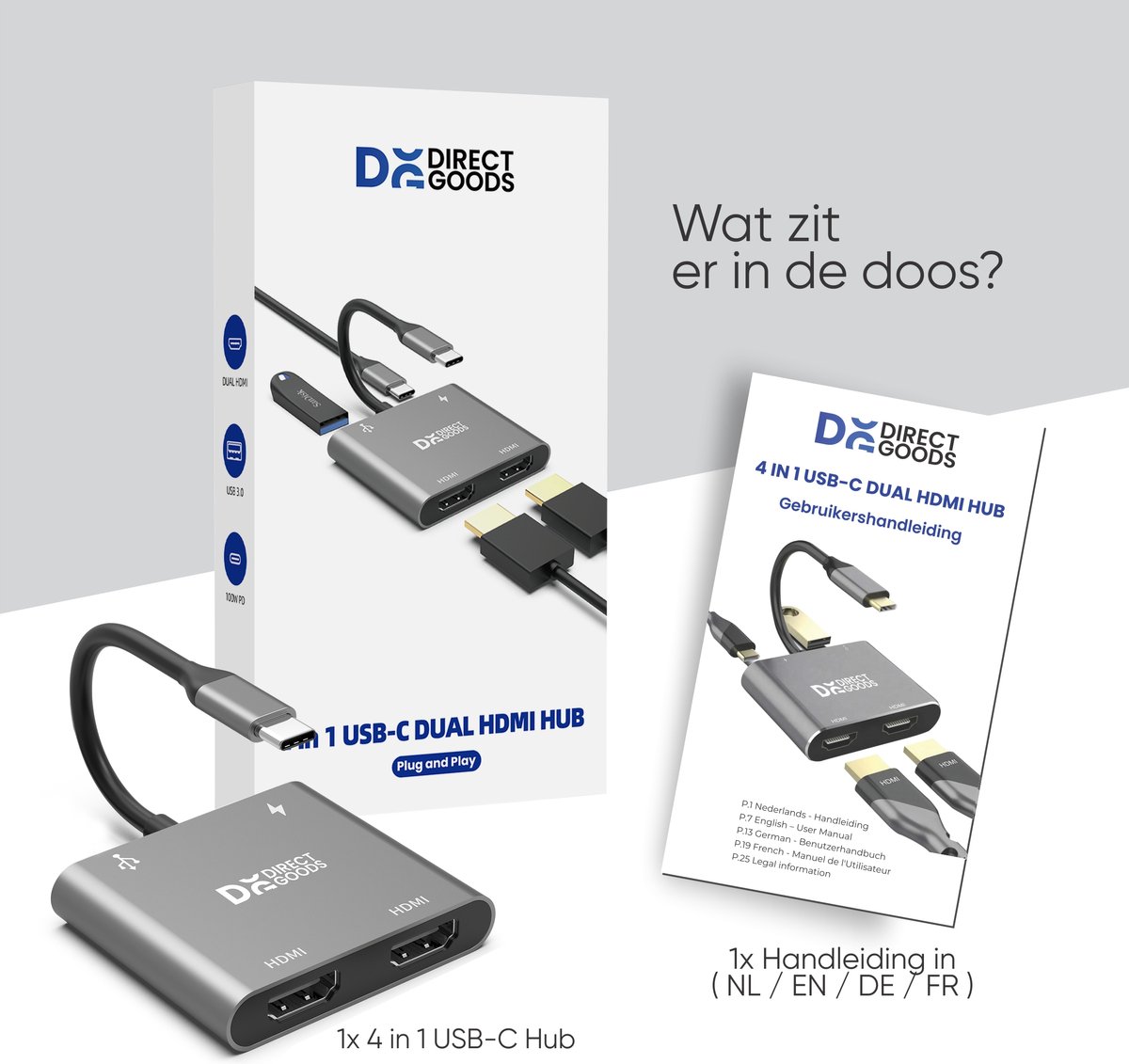 Ontdek de ongekende mogelijkheden van de DirectGoods 4-in-1 USB-C Dual HDMI Hub en werk met meer overzicht, sneller multitasken en een professioneel uitziende werkplek. Bestel nu en ervaar de voordelen van optimale connectiviteit en maximale productiviteit!