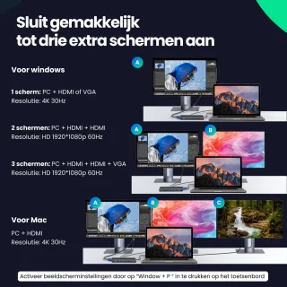 - Dual HDMI 4K — kristalheldere beelden en vloeiende weergave, perfect voor presentaties, videobewerking en games.
