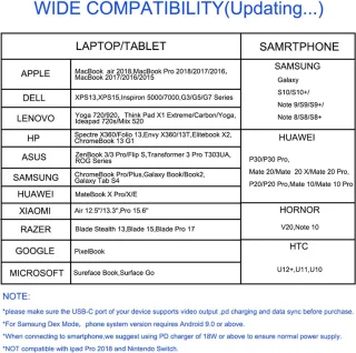 - Breed compatibel: werkt met alle apparaten met een USB‑C‑poort die video‑uitvoer ondersteunen — laptops, tablets, en veel smartphones; geschikt voor toetsenbord, muis, schijfstations en andere randapparatuur.
